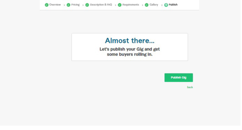 Once everything is ready, click Publish Gig. Your gig is now live and visible to clients. Follow these steps to create the best gigs and start your freelancing journey on Fiverr.