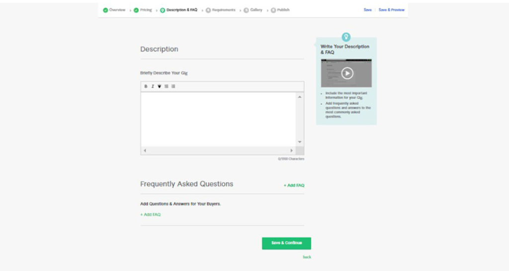 After completing your profile, it’s time to create your first Fiverr gig. Your gig is how clients see your services and place orders.