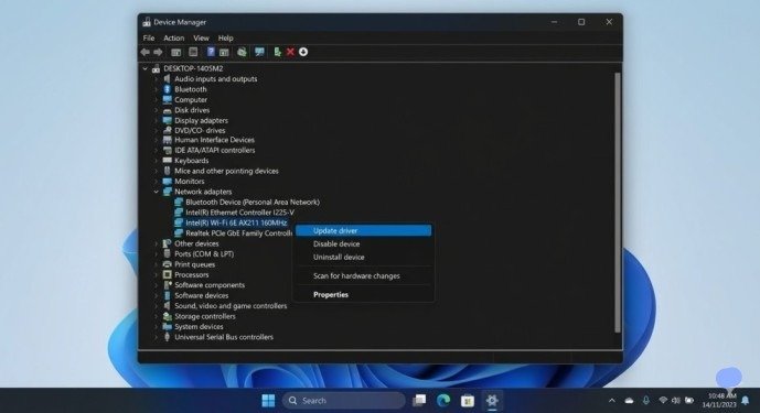 3. Right-click your WiFi adapter (usually named Intel Wireless, Realtek, or Qualcomm)