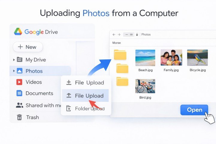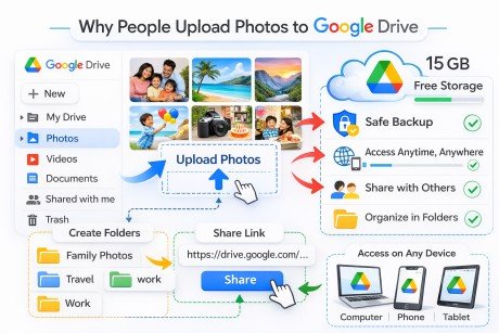 Learn how to upload photos to Google Drive using mobile or computer. This beginner-friendly guide explains simple steps to upload, organize, and manage photos safely in Google Drive.