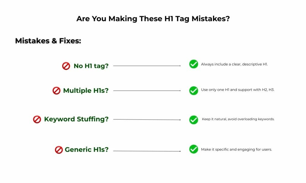 Many people make simple mistakes while writing H1 tags that can harm their SEO. One common mistake is using multiple H1 tags on a single page. This can confuse search engines about the main topic.