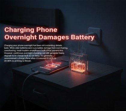 Many people worry that charging a phone overnight can ruin its battery. But, this is in most cases a myth. Modern smartphones stop charging on their own when they reach 100 percent. Overcharging is very rare. Leaving your phone plugged in overnight usually does not harm it. That said, heat is the real factor that can damage a battery over time. Using cheap or unbranded chargers can hurt your battery. Placing your phone under a pillow while charging is not safe.
