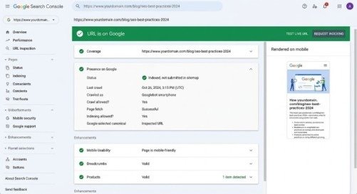 After implementing fixes or publishing new content, you need immediate validation without waiting days for Google to naturally recrawl your pages. The Live URL Test feature provides this instant feedback.