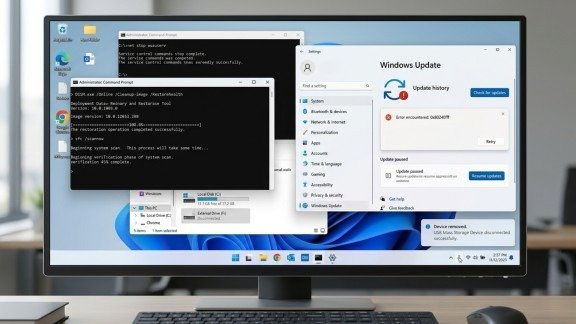 Updates fail due to corrupted files, low disk space, unstable internet, or system conflicts, which stop installations. - How to fix Windows Update errors easily?